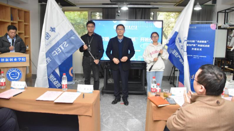 11月25日下午,我校2022级“先进智造”、“新先产研”科创试点班开班仪式在创新创业学院会议室举行。校党委常委、副校长周丛照给班级代表授旗并发表讲话,工程科学学院、先进技术研究院、创新创业学院相关负责人、创新创业导师代表、班主任和同学们共同参与了本次活动。开班仪式由创新创业学院常务副院长朱东杰主持。