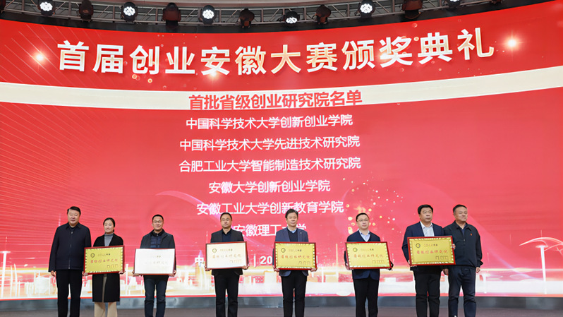 12月11日上午,首届创业安徽大赛颁奖典礼在中安创谷科技园全球路演中心举行。仪式上,我校创新创业学院等10家单位获得授牌,成为安徽省“首批省级创业研究院”。